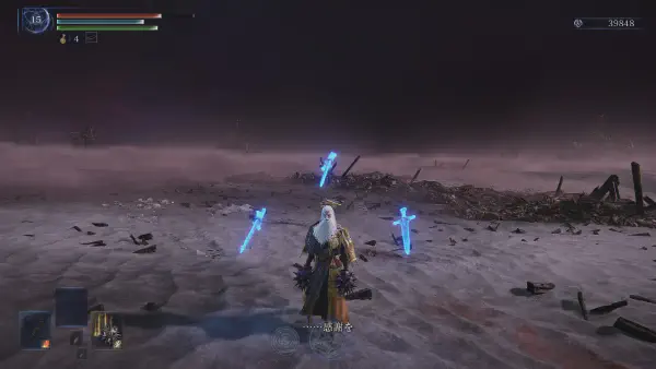 その後目の前の篝火に行かずに道を戻ったら別の篝火があって吹き溜まりって場所に飛ばされて