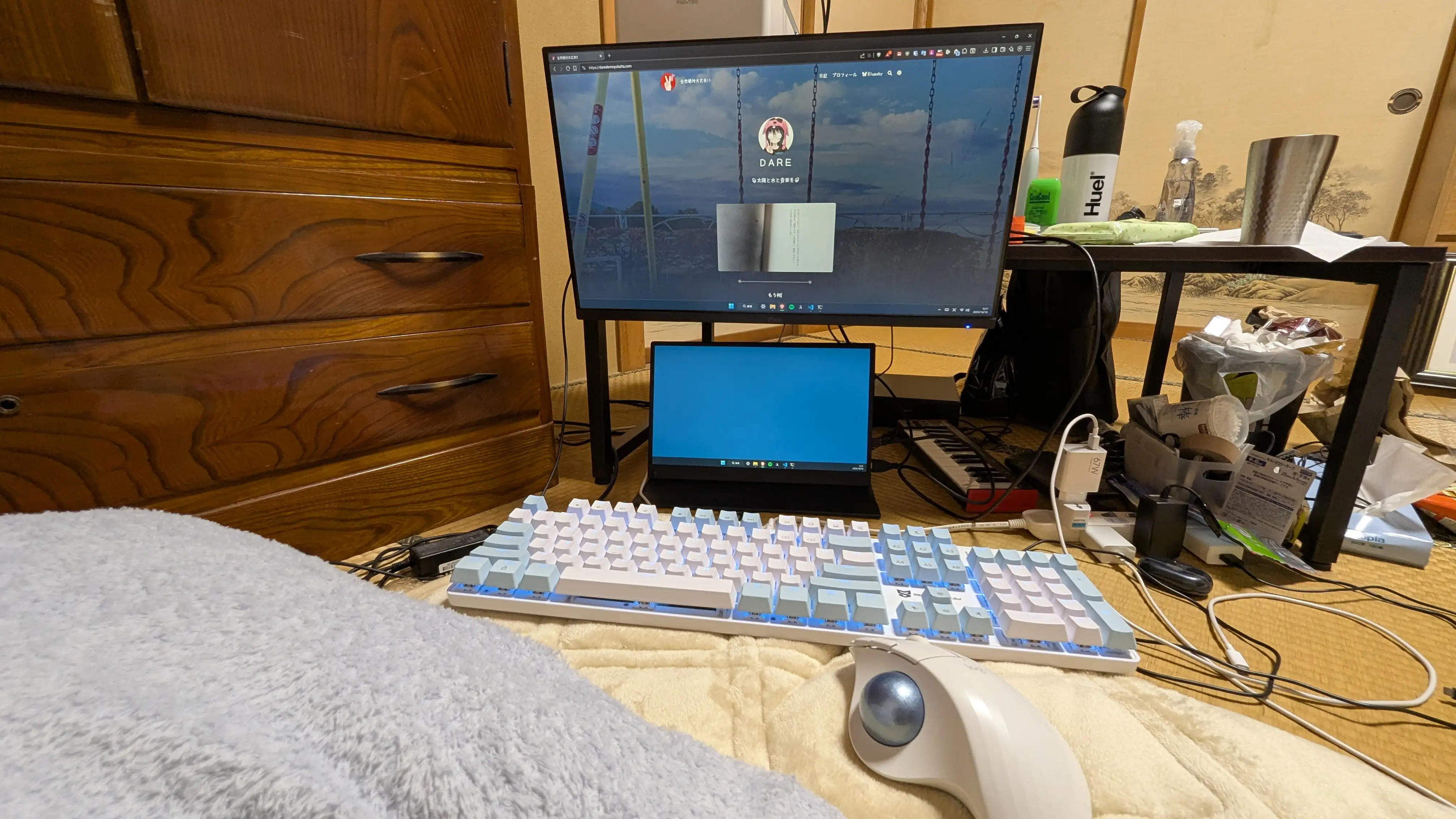 ただケーブルの長さが短くて本当はもっと手前に置きたいんだけどしょうがない